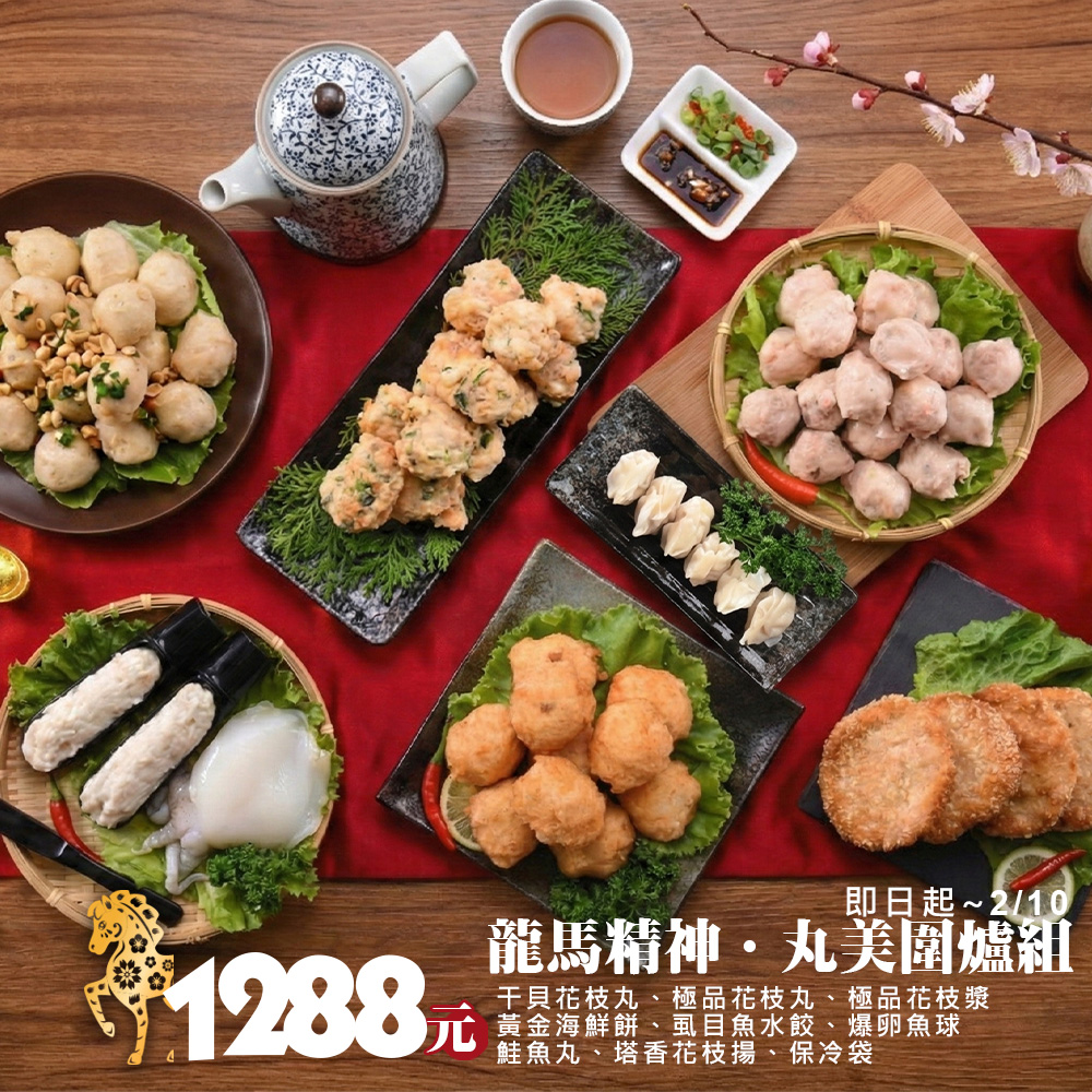 內容物: 🔸干貝花枝丸*1 🔸極品花枝丸*1 🔸極品花枝漿*1 🔸黃金海鮮餅*1 🔸虱目魚水餃*1 🔸爆卵魚球*1 🔸鮭魚丸*1 🔸塔香花枝揚*1 🔸保冷袋*1